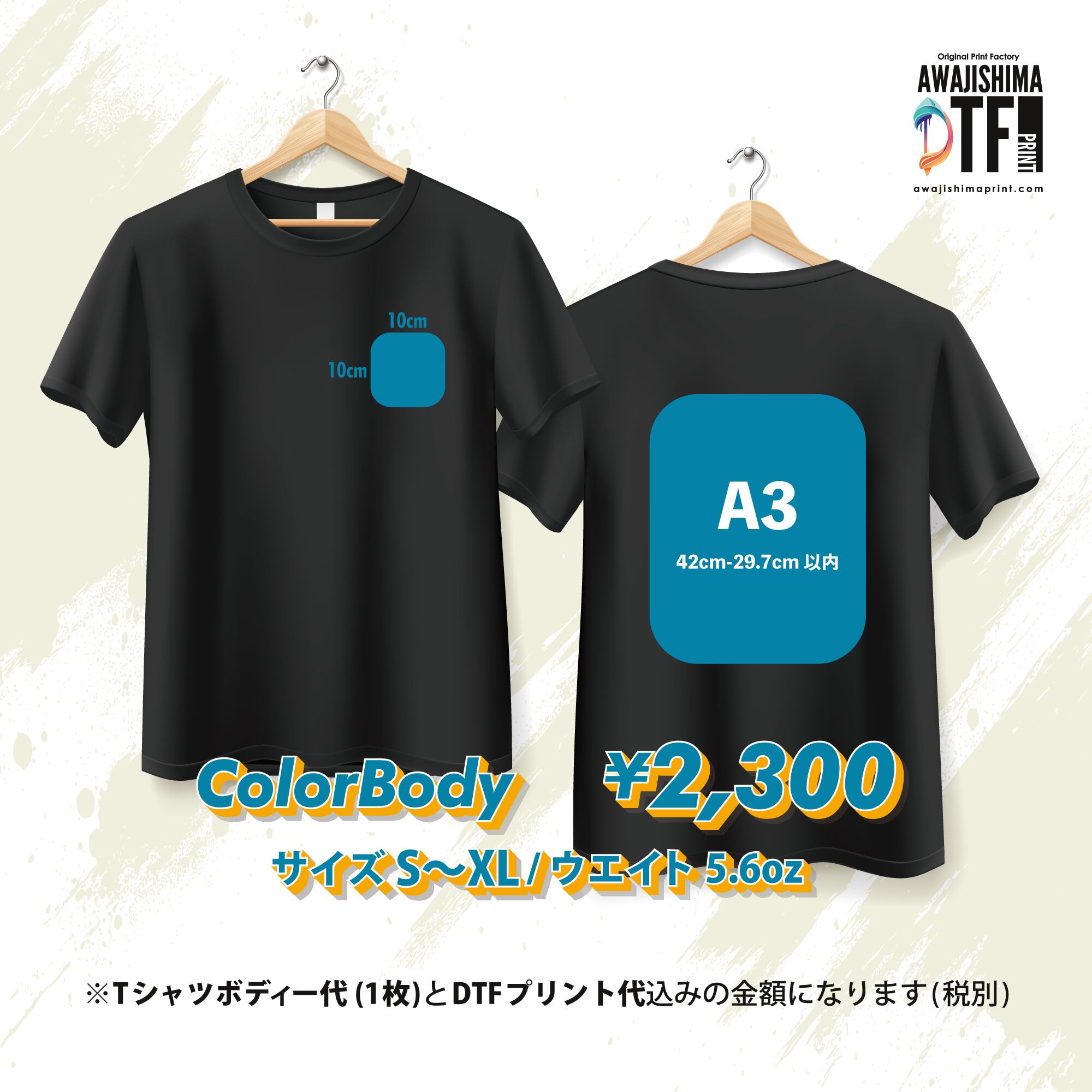 カラーT S〜XL [5.6oz] 10cm角以内とA3サイズ以内の2カ所 DTFプリント